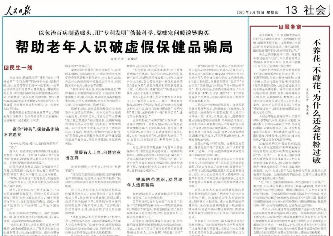此前,《人民日报》发表《帮助老年人识破虚假保健品骗局》一文,文中指出,近年来,一些不法商家抓住部分老年人健康焦虑、情感孤独的心理,诱导他们高价购买虚假保健品和药品,严重损害了老年人的合法权益。如今,这些骗局套路更是手法翻新,利用电商平台、视频直播、朋友圈发布等多种形式,让一些老年人防不胜防。